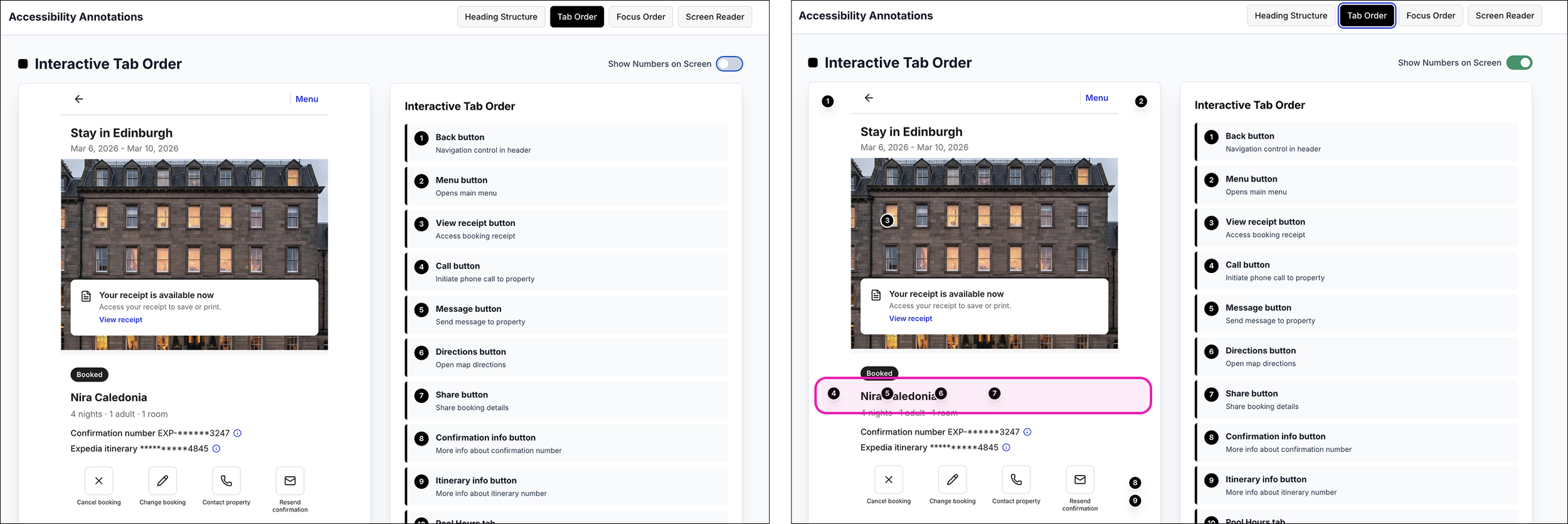 Tab Order — Determines the sequence in which interactive elements are consumed via keyboard.