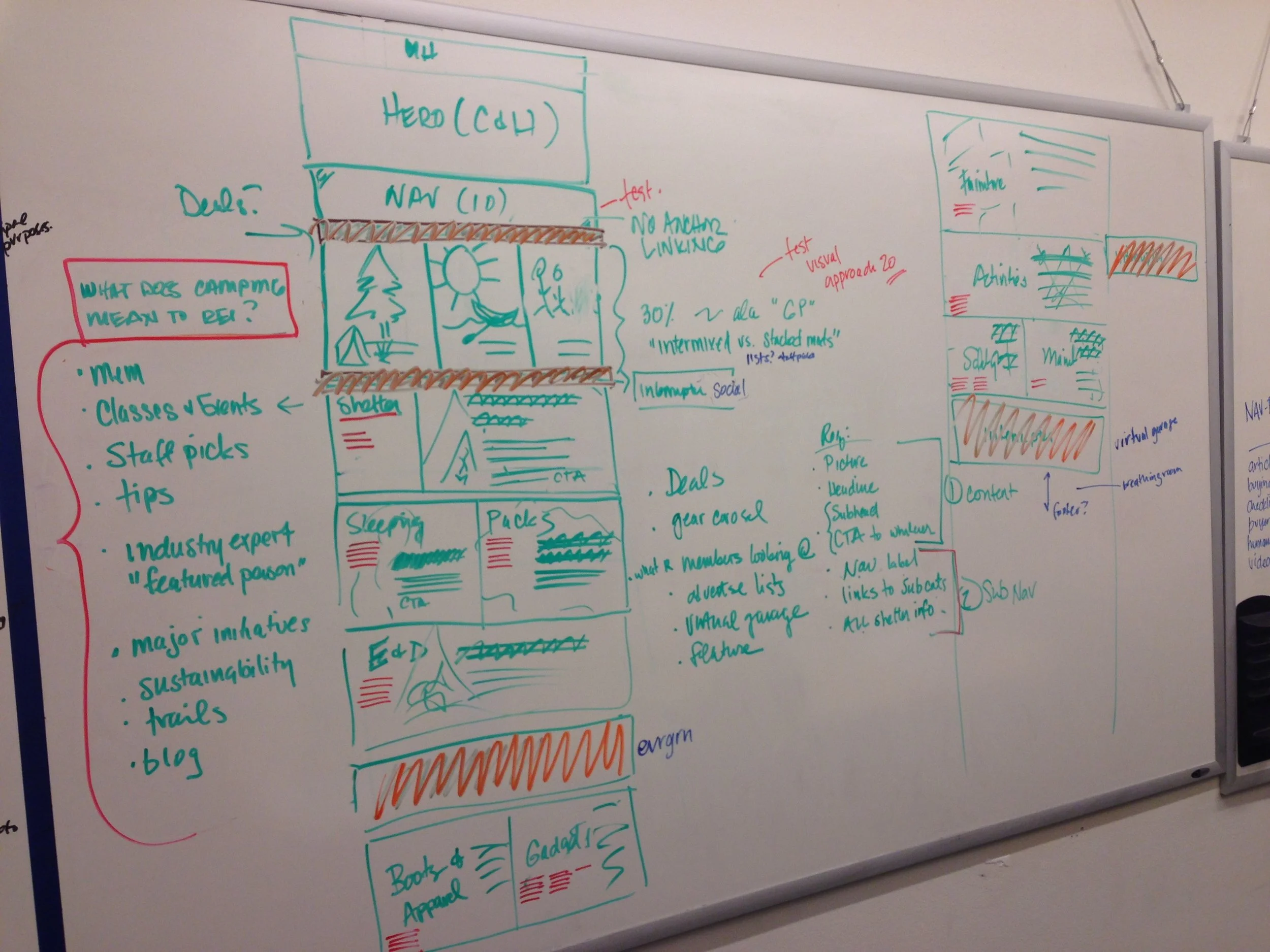 Recreational Equipment Inc (REI) is known for the quality and character of its brick-and-mortar store environments, sales associate (aka "Green Vests") knowledge and genuine enthusiasm for discovering the outdoors, and its passionate community members. Like many online retailers, REI had come to the realization that what made them special was not mass product and lowest prices, but brand integrity, service and expertise. REI wanted its website to better reflect the in-store environment, Green Vest expertise, and community experience without interfering with the shopping funnel and purchase process.