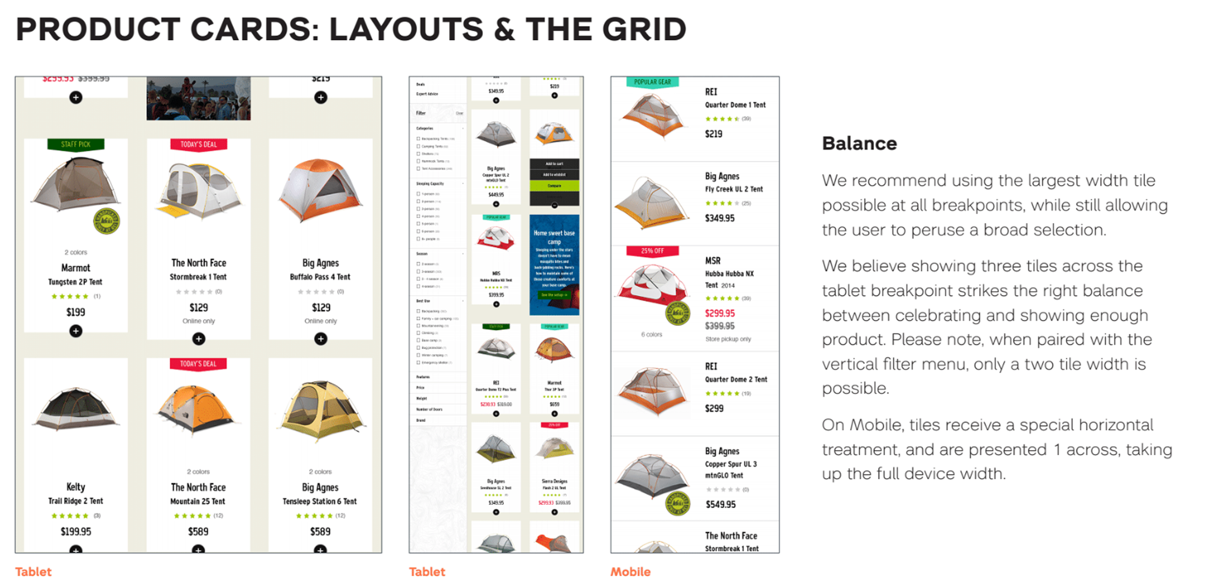One of the largest content strategies I helped craft (up to that point) was determining the ratio of outdoor expertise content (e.g., "selecting a tent") to product gear (e.g., "tents for families") across the shopping funnel. It was a critical step that aligned with the page templating.
